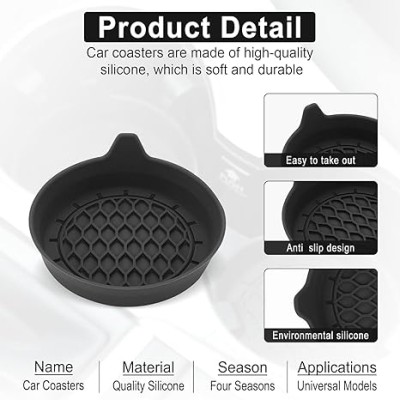 SINGARO Car Cup Holder Coaster, Silicone Cup Holder Insert, Universal Non-Slip Cup Holders, Car Accessories Interior for Women and Man Interior Sets 4 Pack Black